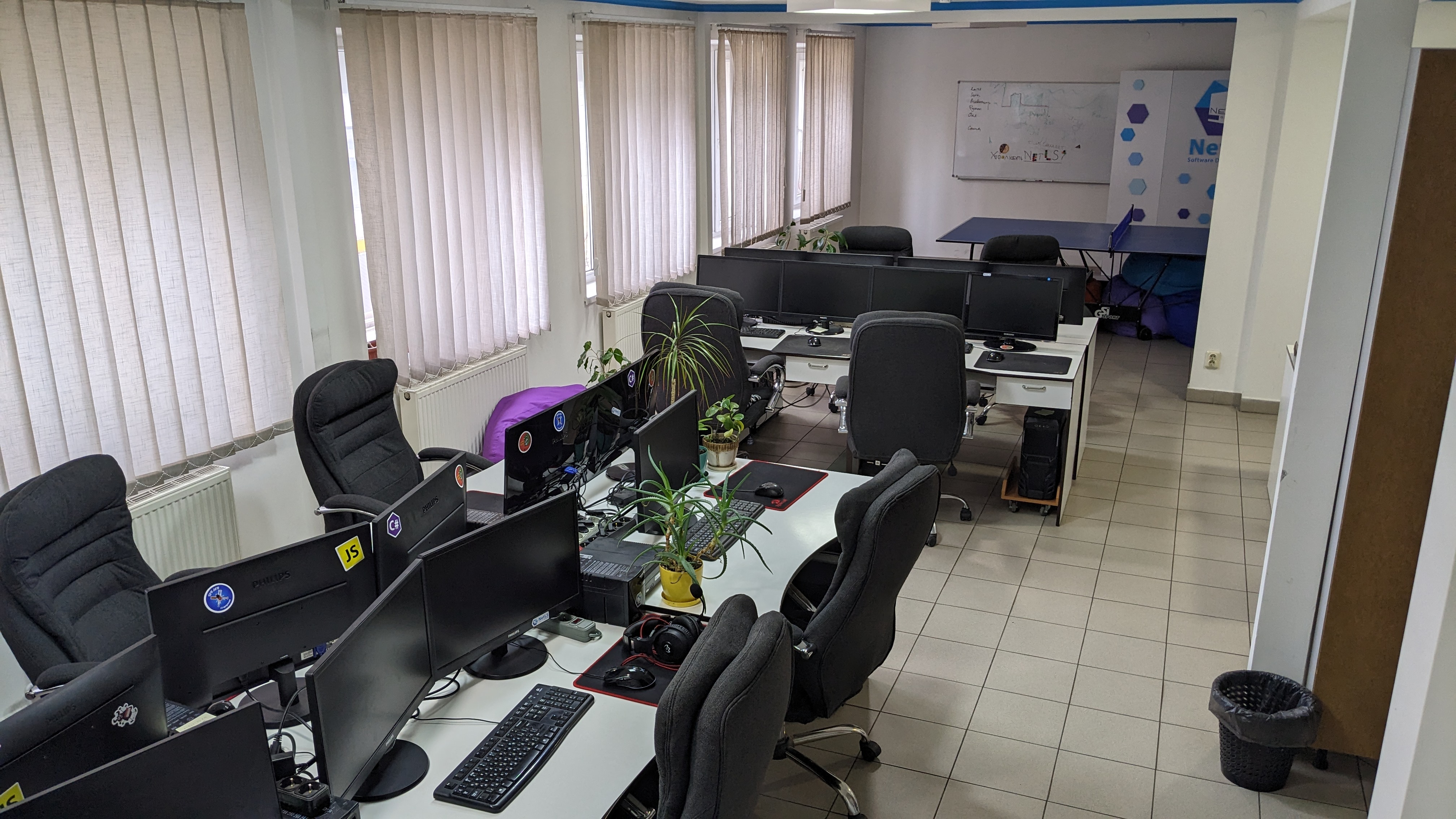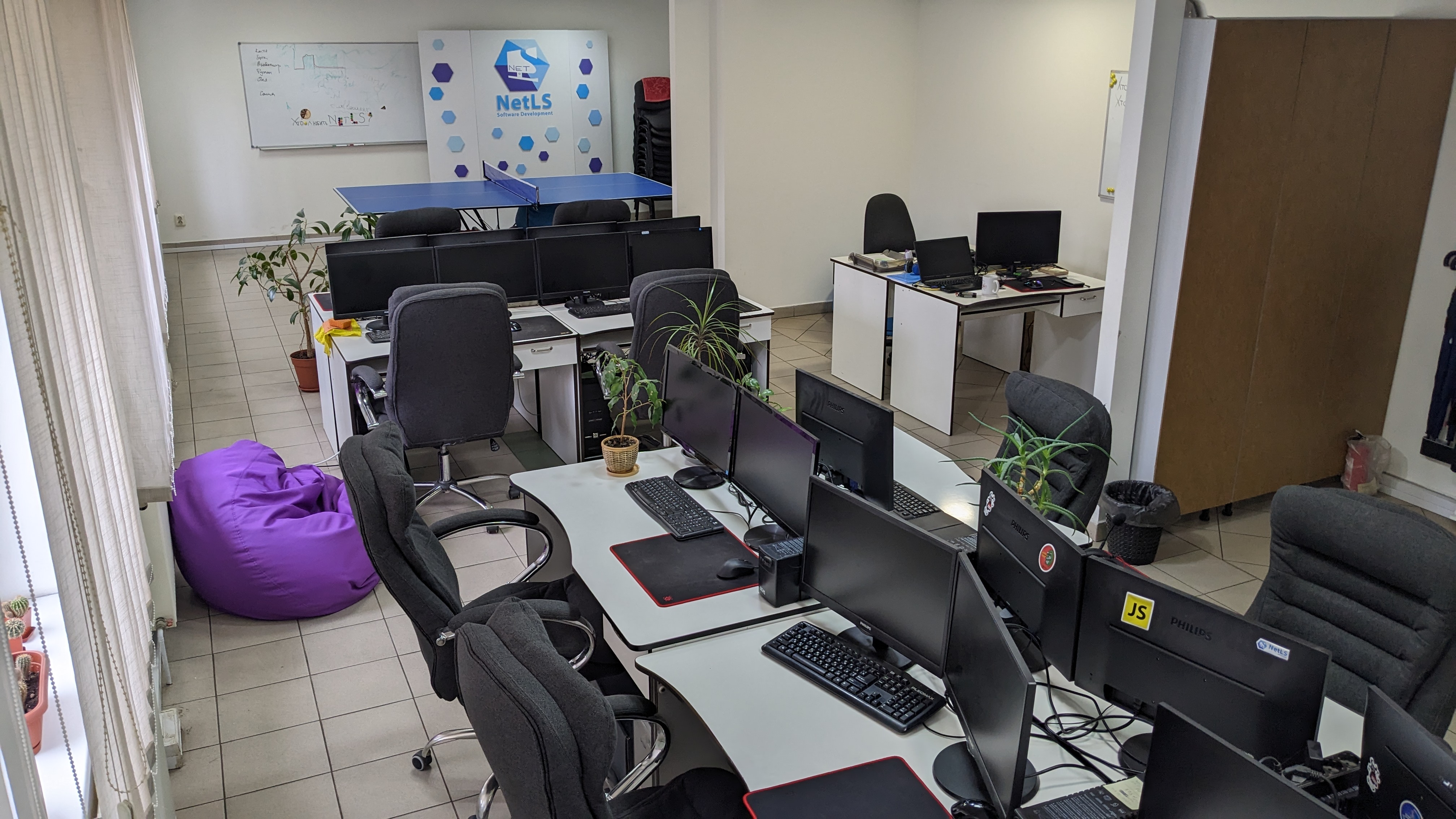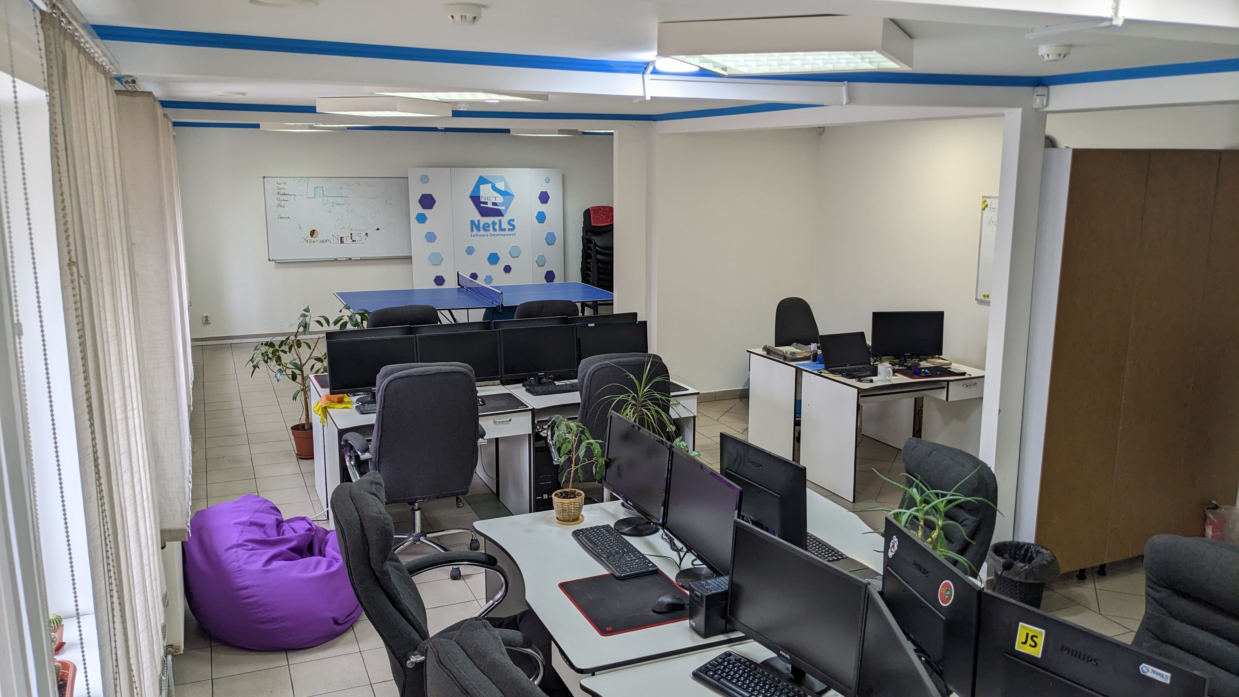 Для якісної роботи – якісні умови. Компанія NetLS забезпечує працівників всіма комфортними умовами, новою технікою, ортопедичними кріслами, пледами, напоями та навіть солодощами. Також ми пропонуємо настільний теніс та різні ігри для регулярних розваг та відпочинку від роботи.