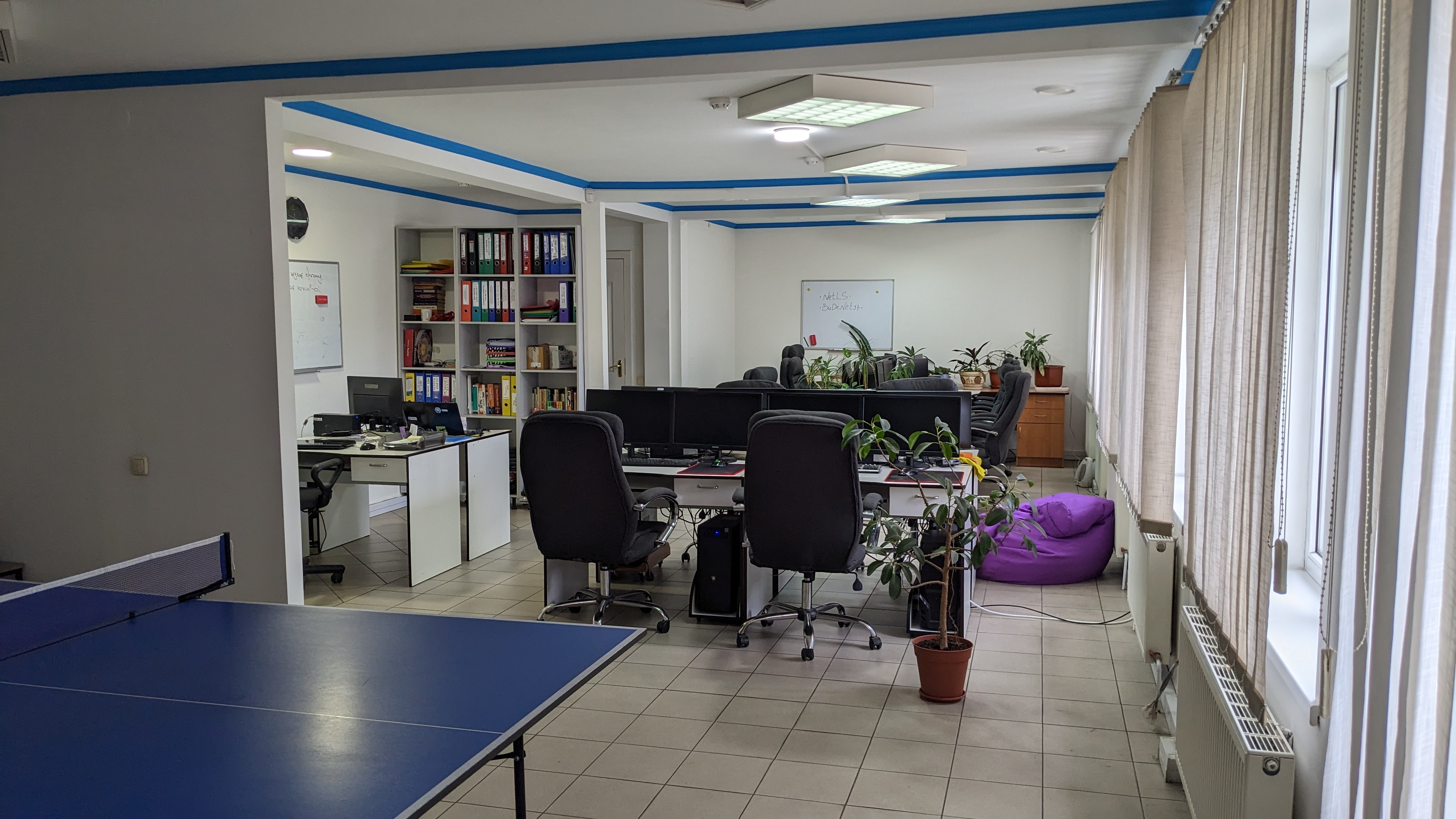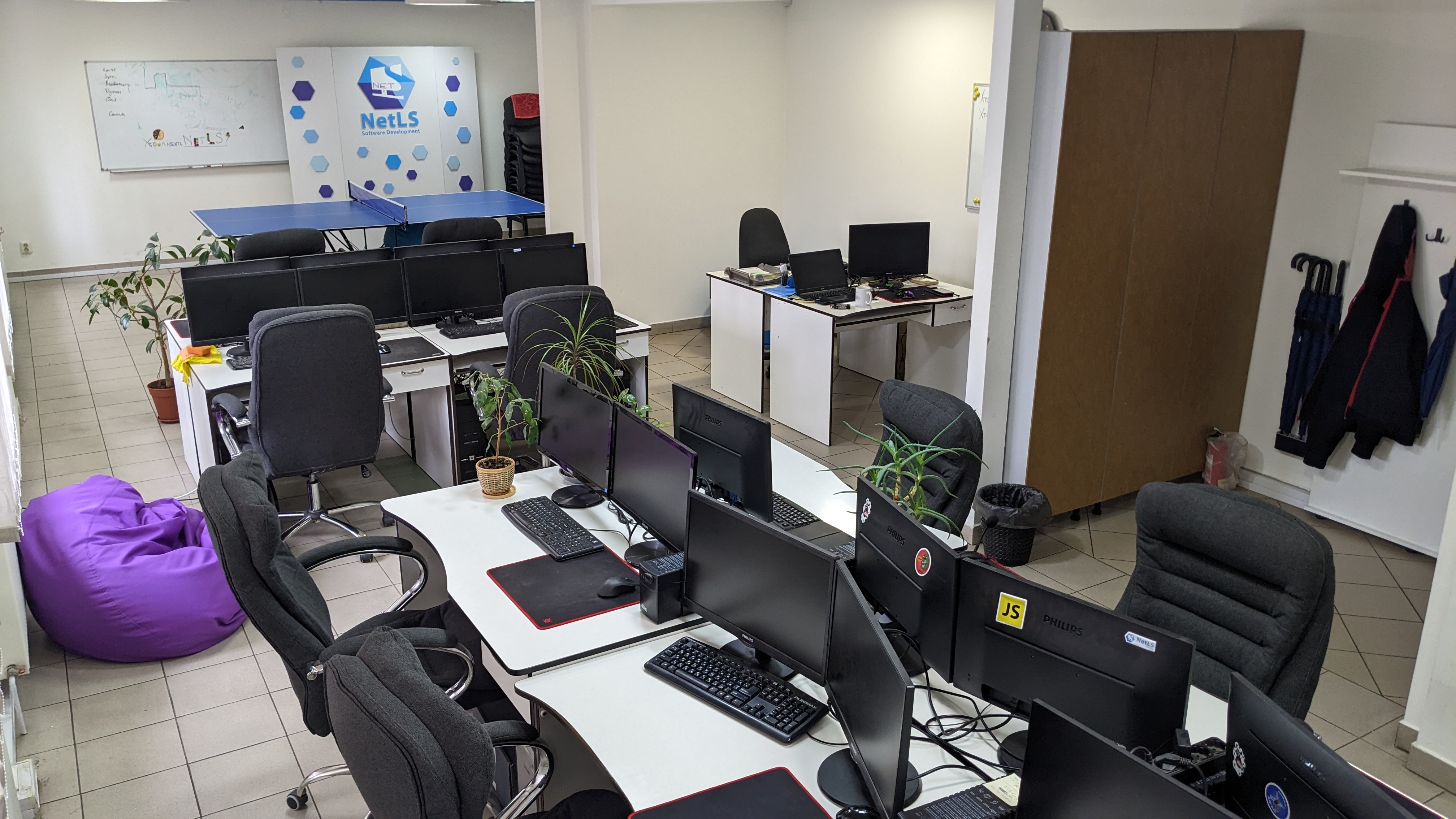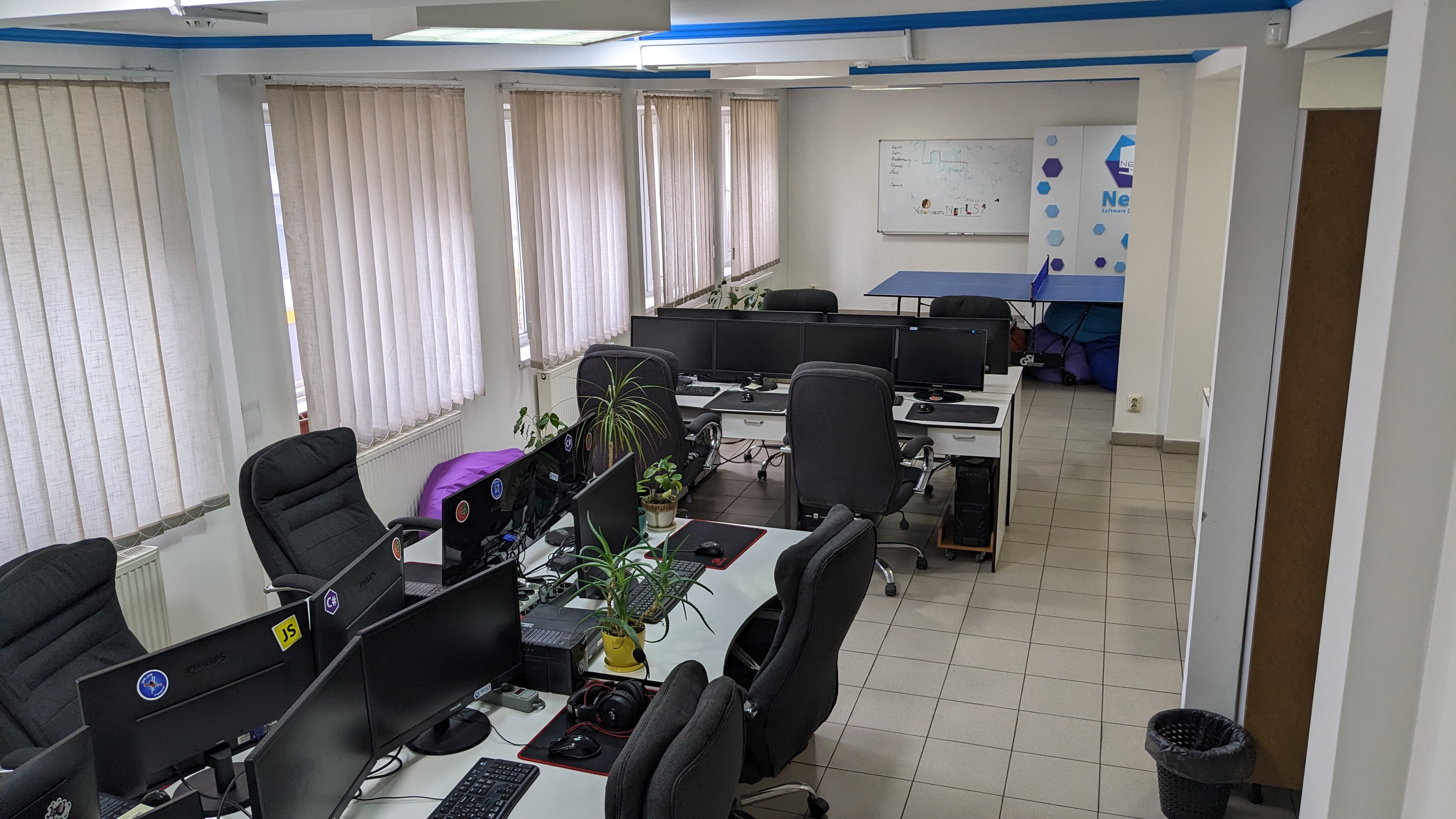 Для якісної роботи – якісні умови. Компанія NetLS забезпечує працівників всіма комфортними умовами, новою технікою, ортопедичними кріслами, пледами, напоями та навіть солодощами. Також ми пропонуємо настільний теніс та різні ігри для регулярних розваг та відпочинку від роботи.